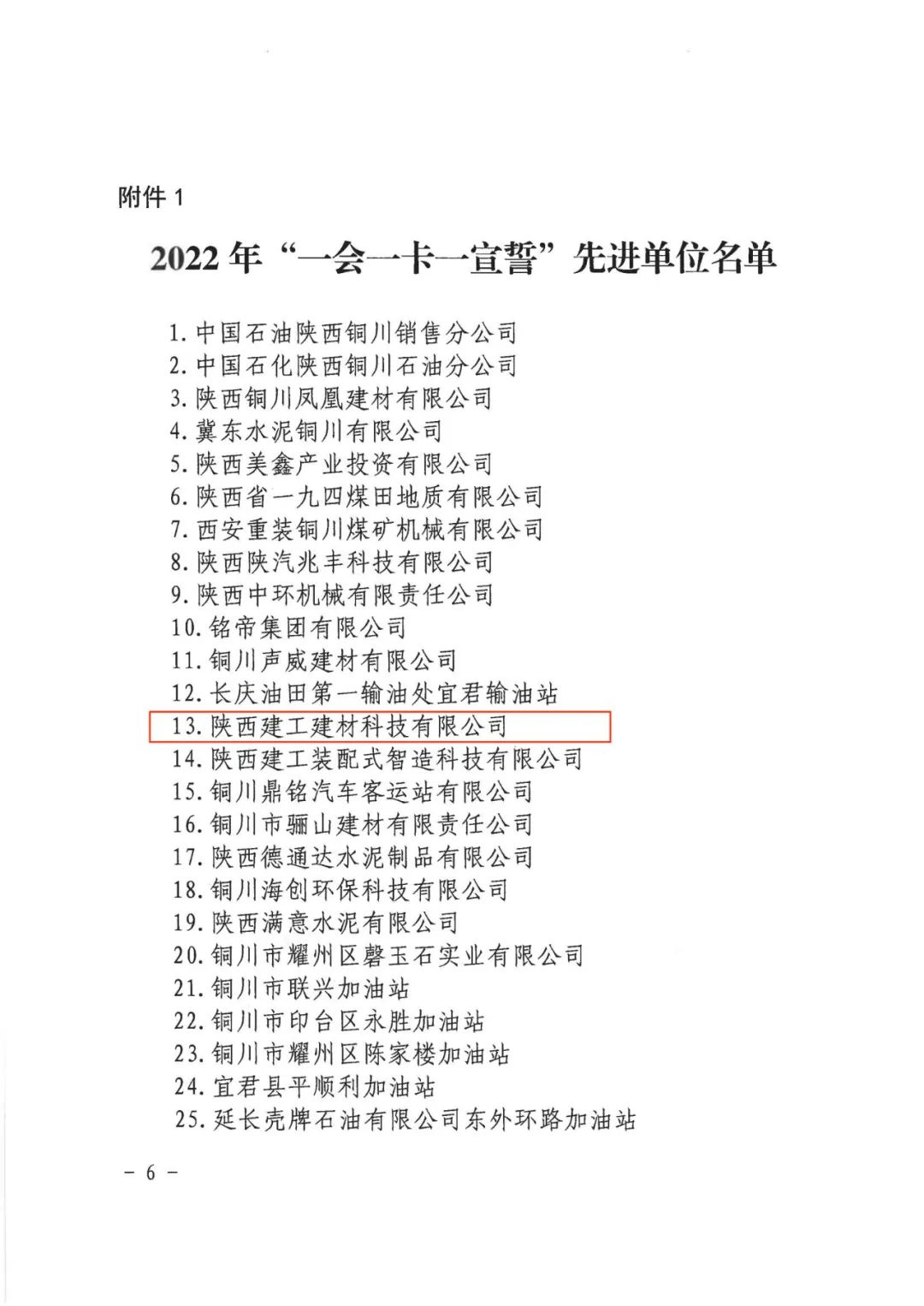 近日,銅川市安全生產(chǎn)委員會(huì)辦公室、銅川市應(yīng)急管理局聯(lián)合發(fā)文,通報(bào)表彰企業(yè)安全生產(chǎn)“一會(huì)一卡一宣誓”工作先進(jìn)單位,陜建建材科技公司榮獲2022年度先進(jìn)單位。