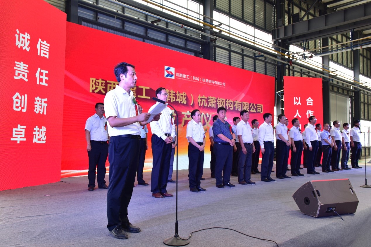 陜建投資集團副總經(jīng)理、陜建(韓城)杭蕭鋼構(gòu)有限公司董事長蘇寶安參加儀式并致感謝辭