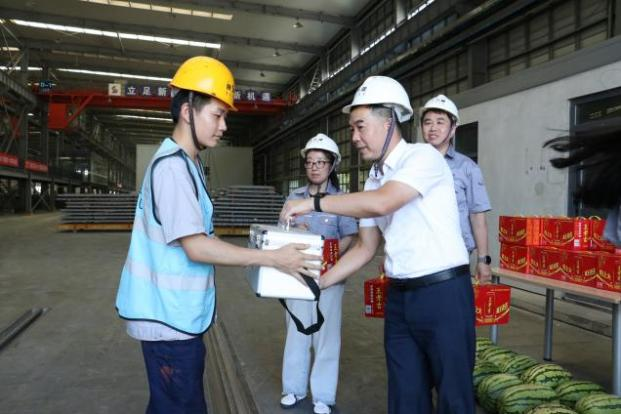 調(diào)研中,王政為冒酷暑、戰(zhàn)高溫,堅(jiān)守崗位的一線職工送去“清涼”防暑福利和慰問(wèn)關(guān)懷。