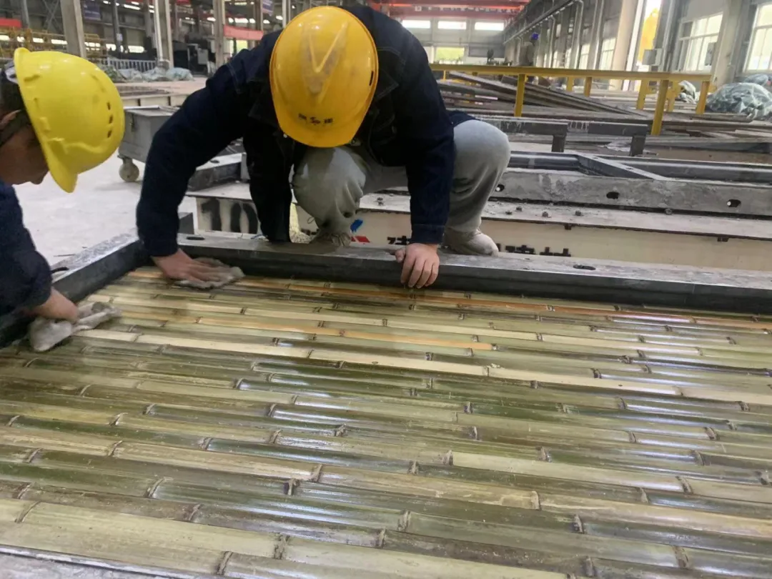 在此次QC活動(dòng)中,小組成員運(yùn)用科學(xué)的測(cè)算和調(diào)查方法,逐一分析竹紋掛板一次合格率,針對(duì)“粘模、掉角”這兩項(xiàng)癥結(jié),經(jīng)過運(yùn)用BIM技術(shù)改進(jìn)翻轉(zhuǎn)工裝,多次試驗(yàn)脫膜劑材料等一系列改進(jìn)措施,將成品一次平均合格率由94.72%提升至99.38%。隨后小組成員將活動(dòng)中的有效對(duì)策進(jìn)行整理、歸檔,匯總編制形成《預(yù)制竹紋掛板生產(chǎn)作業(yè)指導(dǎo)書》全面運(yùn)用到生產(chǎn)實(shí)踐中,全面提高竹紋掛板一次合格率。
